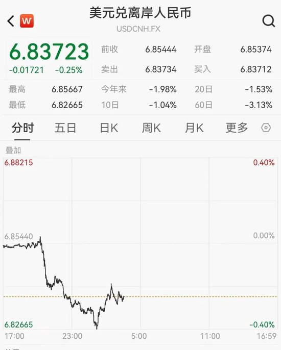 配资在岸人民币兑美元收盘报6.8397,较上一交易日上涨275点。离岸人民币兑美元汇率盘中最高升值至6.8266。